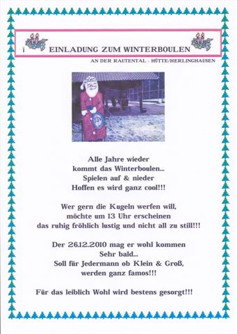6. Weihnachts-Boule-Turnier am 26.12.2010 ab 13.00h