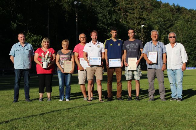 Der Ehrenamtsbeauftragte des SSV Herlinghausen , Frank Schmidt, und der 1. Vors. Jürgen Koch nahmen im Anschluß an das Seniorentrunier auf dem Sportplatz einige Ehrungen vor.