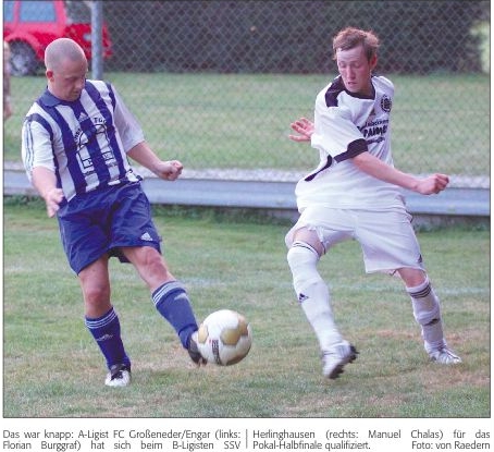 Ein Elfmeter in der 82. Min. hat das Kreispokalspiel zugunsten des FC Großeneder/Engar bei tropischen Temperaturen um 35 Grad entschieden.