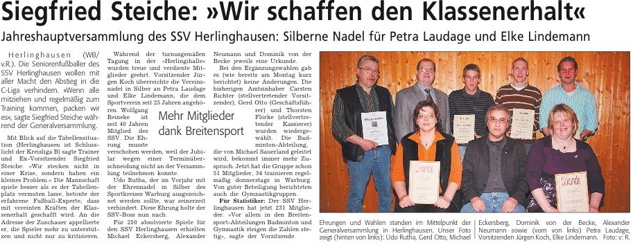 Kurzbericht zur Jahreshauptversammlung des SSV Herlinghausen am 14.02.2009