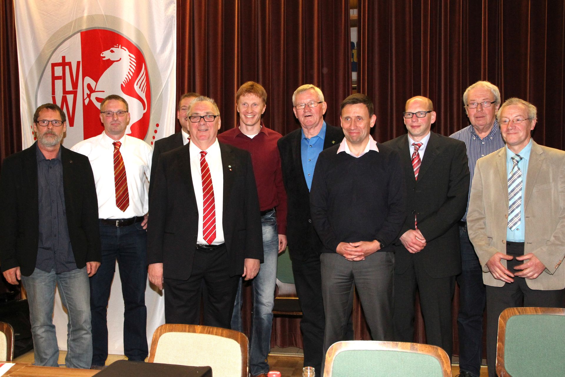 von links: Horst Sündermann (VKJA), Dieter Attelmann (VKFA), Marcel Rehermann (VKSA), Hermann Josef Koch (Kreisvorsitzender), Martin Derenthal (stellv. Kreisvorsitzender), Wolfgang Eikenberg (VKSK), Michael Kluwe (VKLA), Alexander Selter (F&B), Gerhard Schwiete (Kassierer) und Adalbert Grüner (Qualifizierung u. Vereinsentwicklung)