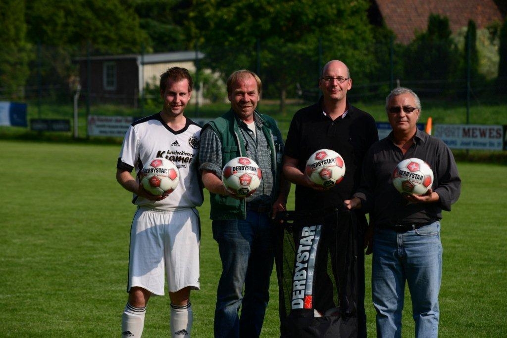 Pünktlich zur Vorstellung des neuen Teams überreichten die Geschäftsführer Marco Sauerland (Botanikzentrum Sauerland) und Roland Becker (Holzland Becker) 10 neue Trainingsbälle sowie einen neuen Spielball an den SSV Herlinghausen.