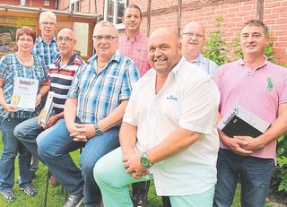 Die Vertreter der fairsten Vereine der abgelaufenen Saison präsentieren sich im Biergarten des Gasthauses „Groll“ mit dem Sportkreisvorsitzenden.