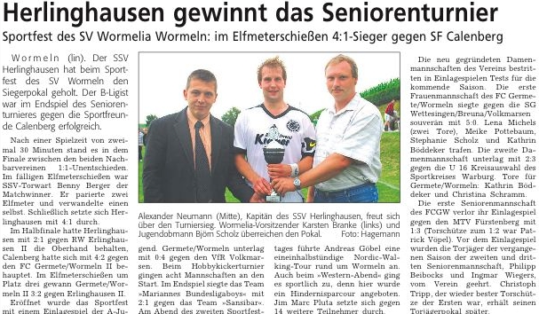 Der SSV Herlinghausen gewinnt verdient das Pokalturnier in Wormeln