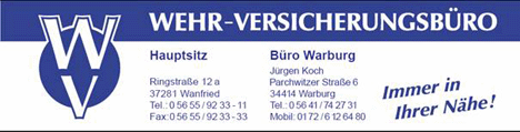 Das Versicherungsbüro Wehr mit Sitz in Wanfried (Werra-Meissner-Kreis), als kompetenter Versicherungspartner bundesweit im Privat- und Firmenbereich tätig, hat als Mit-Hauptsponsor des SSV Herlinghausen einen kompletten Satz Trainingsanzüge der Fußballmannschaft des SSV zur Verfügung gestellt.